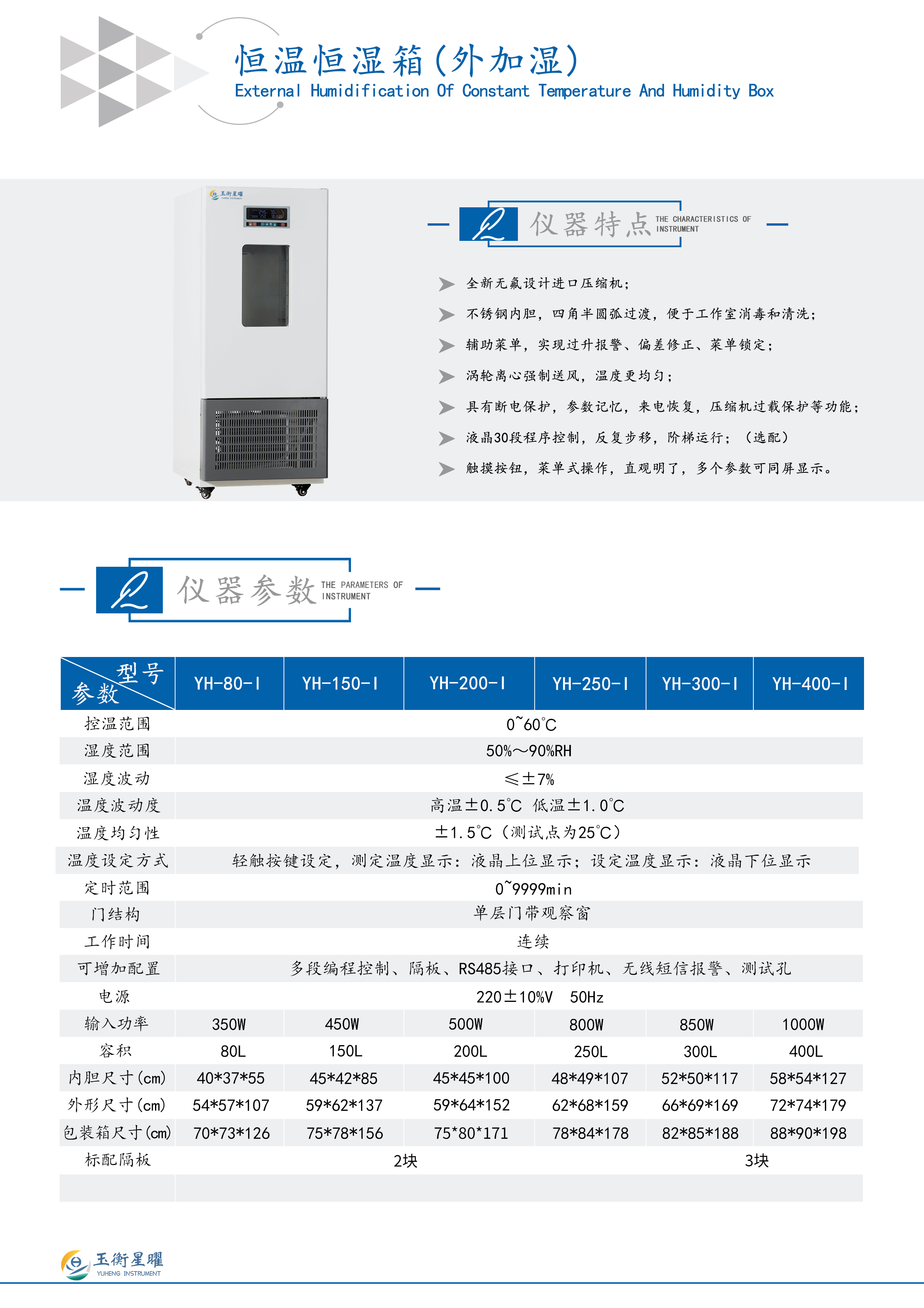 恒温恒湿培养箱(外加湿)技术参数: