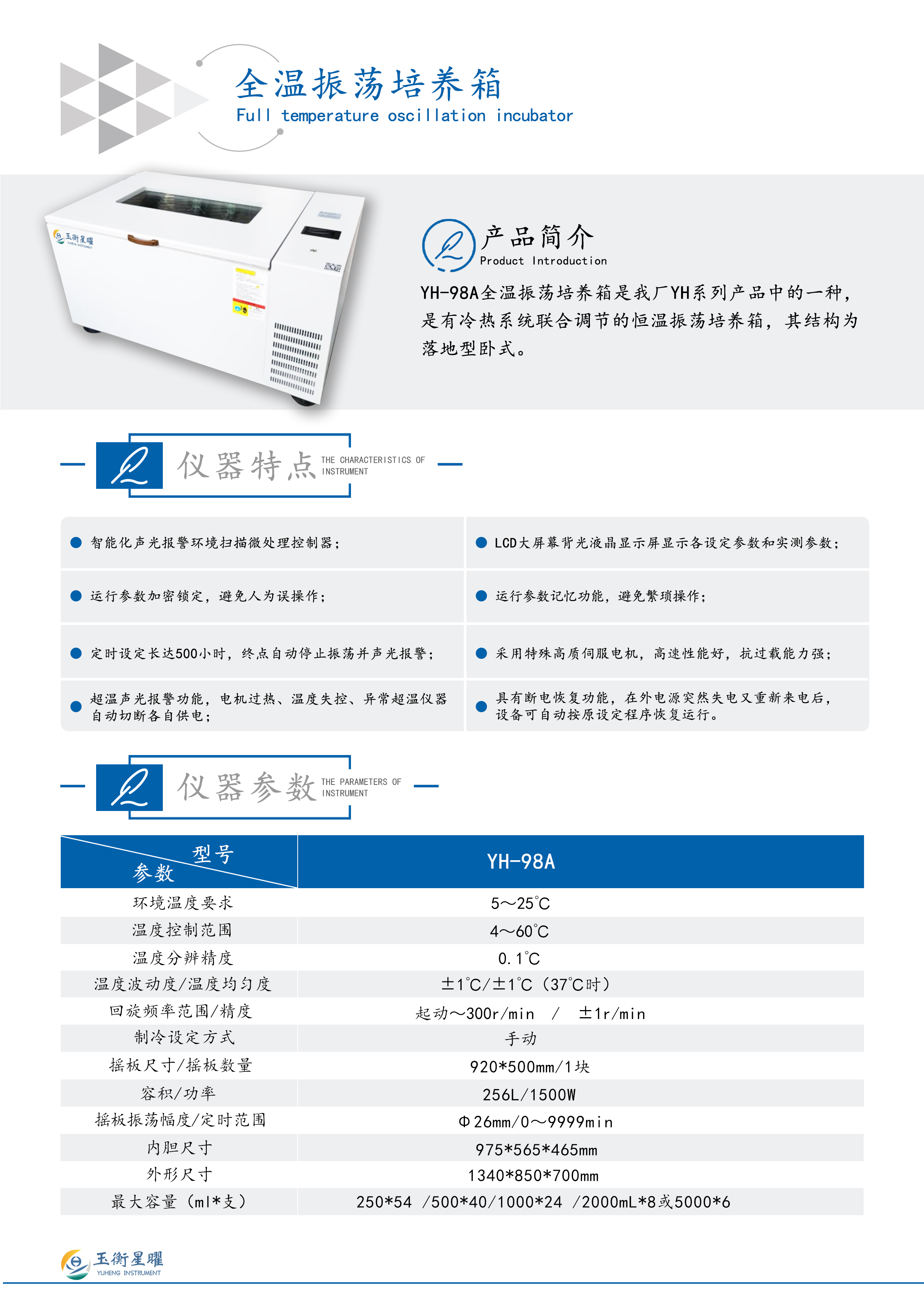 YH-98A全温振荡培养箱产品特点: