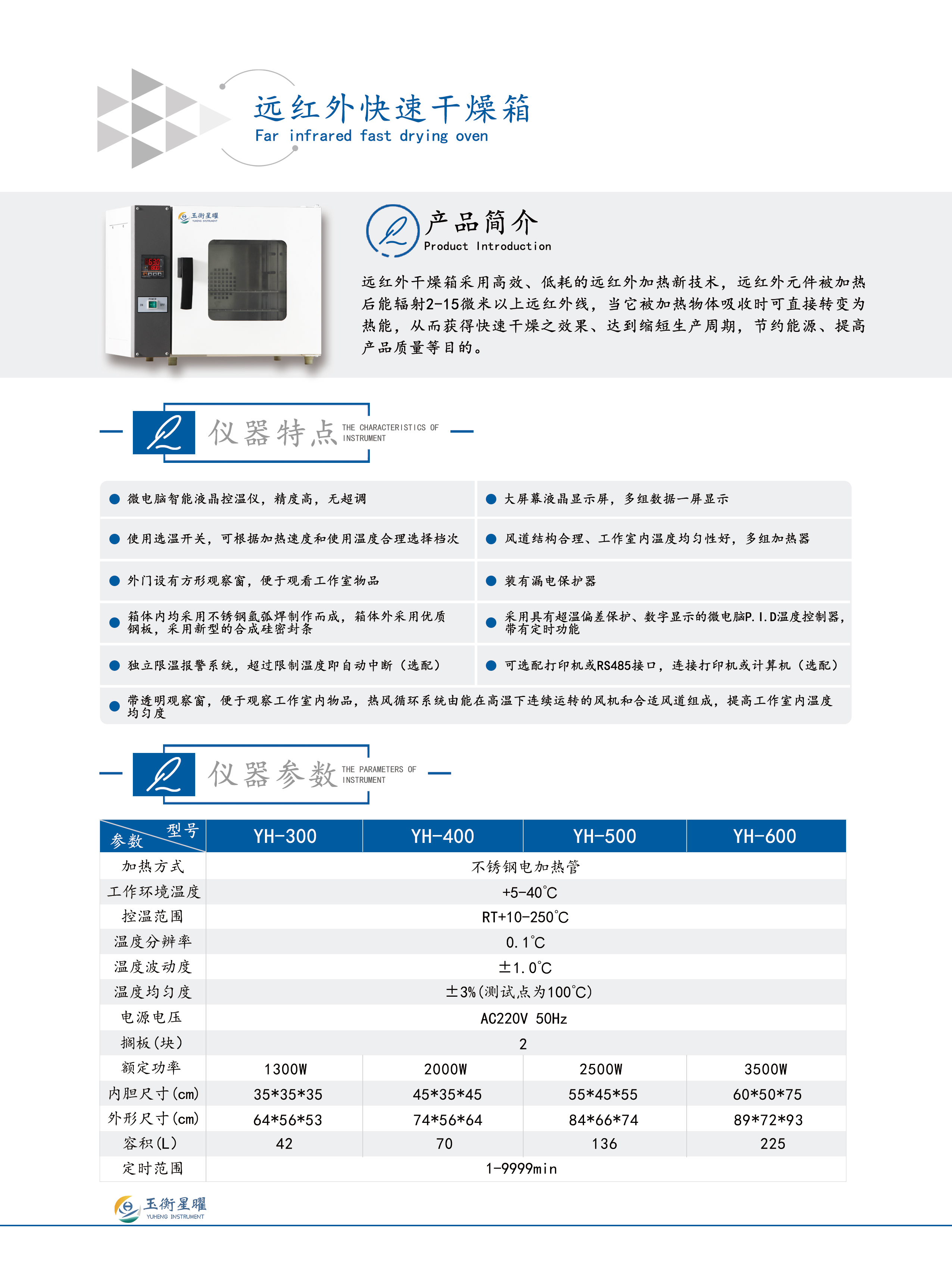 远红外快速干燥箱技术参数: