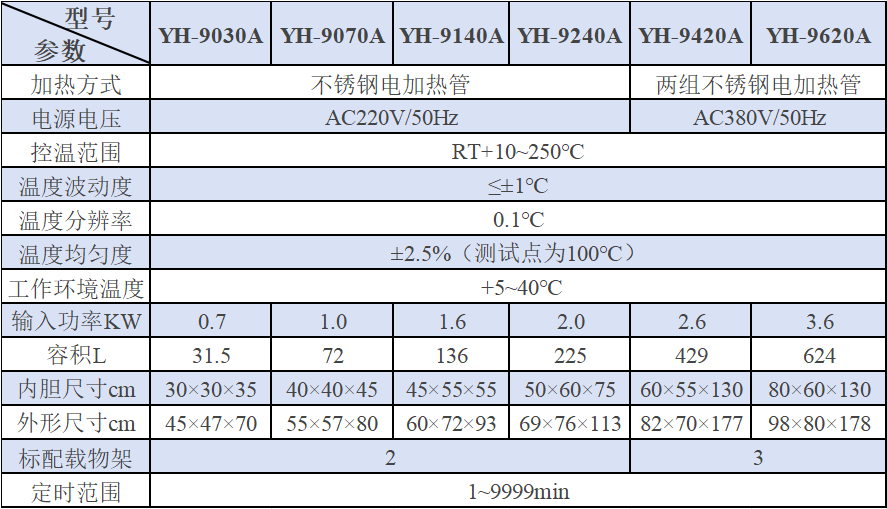 电热恒温鼓风干燥箱(250℃)技术参数:
