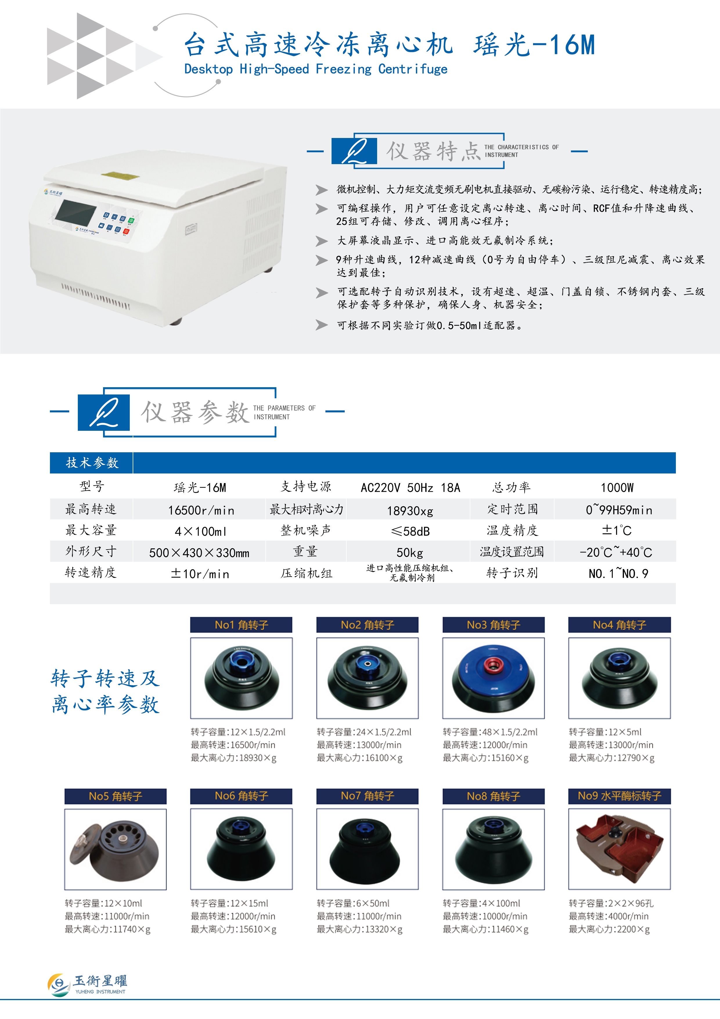 瑶光-16M台式高速冷冻离心机产品特点:
