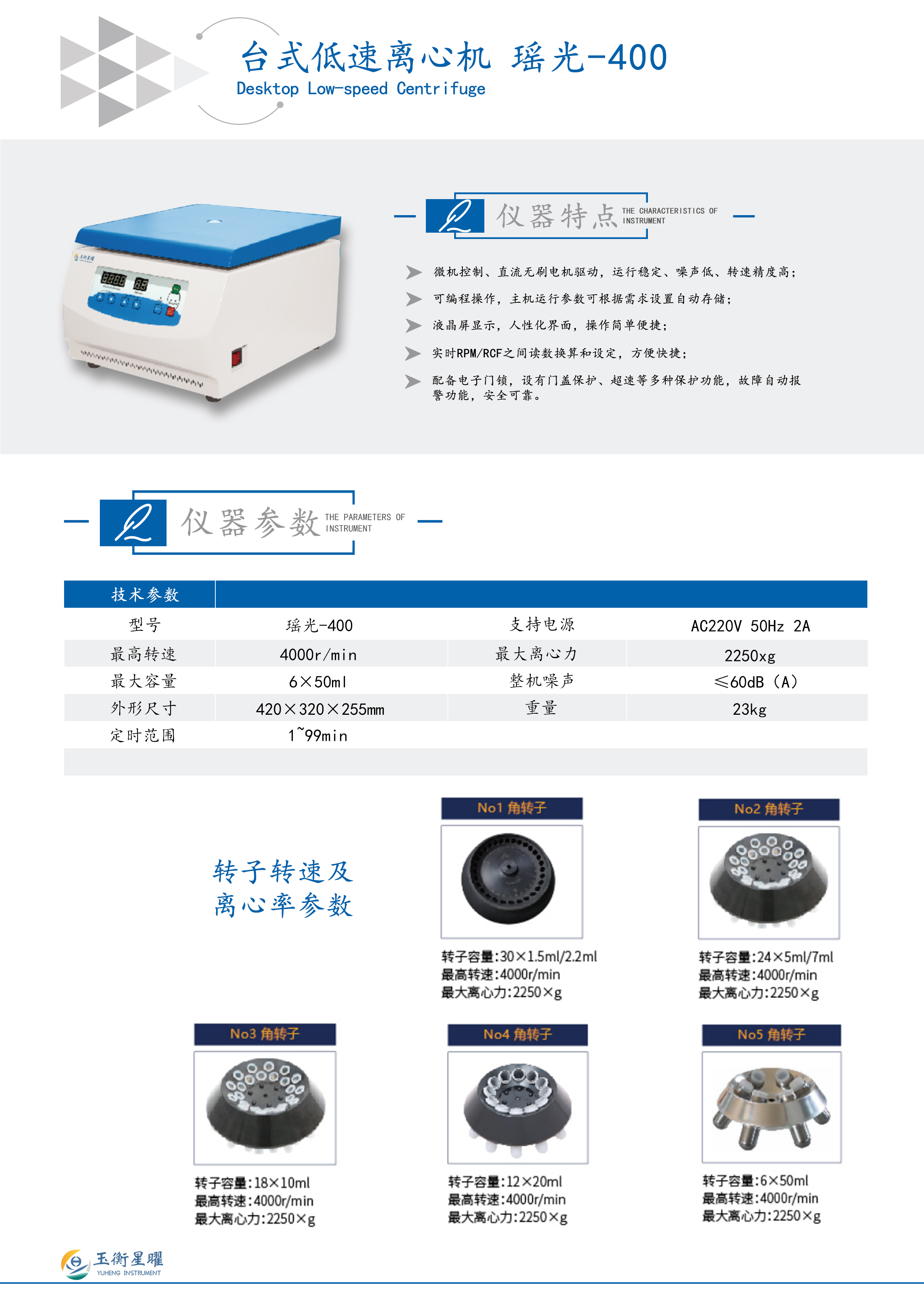 瑶光-400台式低速离心机技术参数: