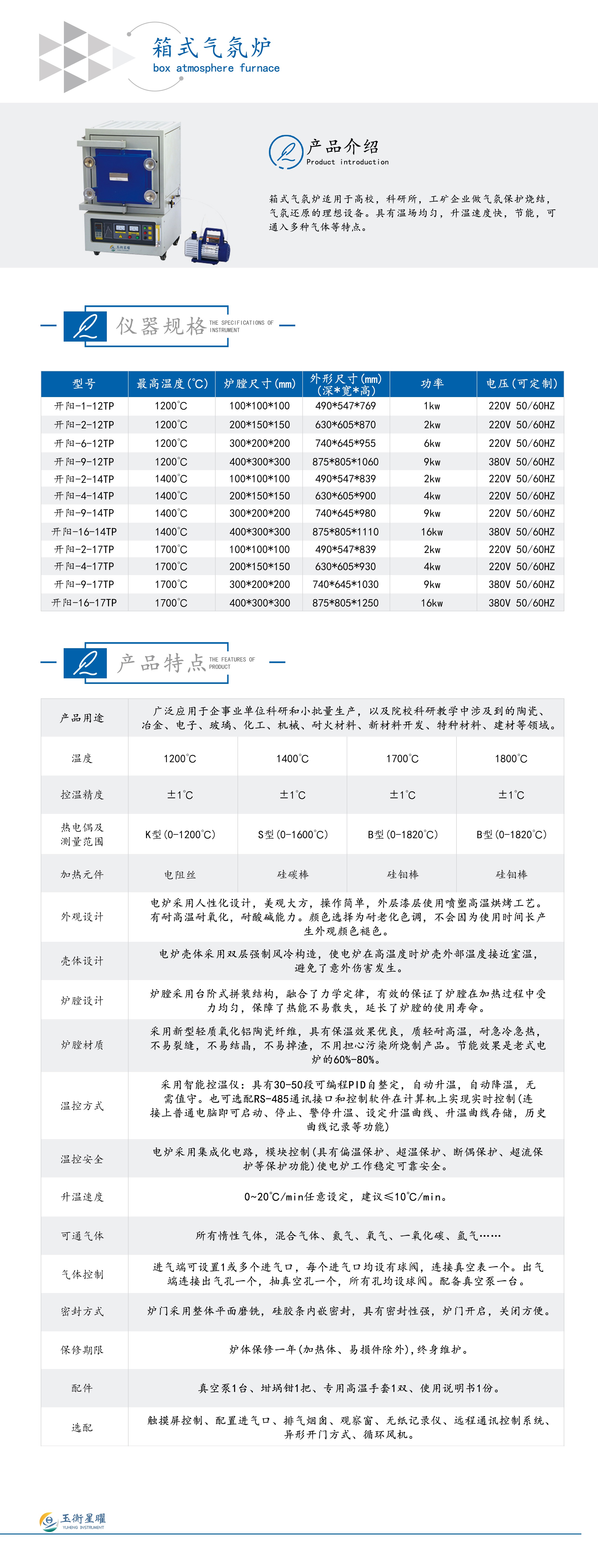箱式气氛炉技术参数(可非标定制)